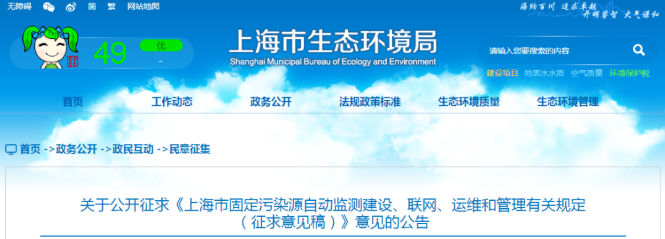 上海市固定污染源自動(dòng)監(jiān)測(cè)建設(shè)、聯(lián)網(wǎng)、運(yùn)維和管理有關(guān)規(guī)定(征求意見(jiàn)稿)