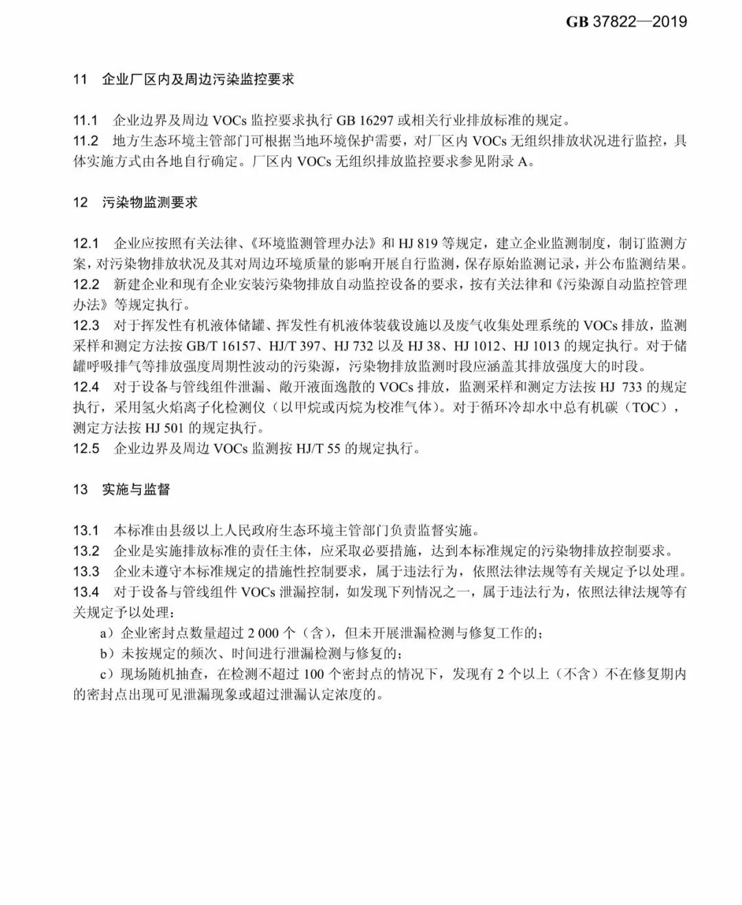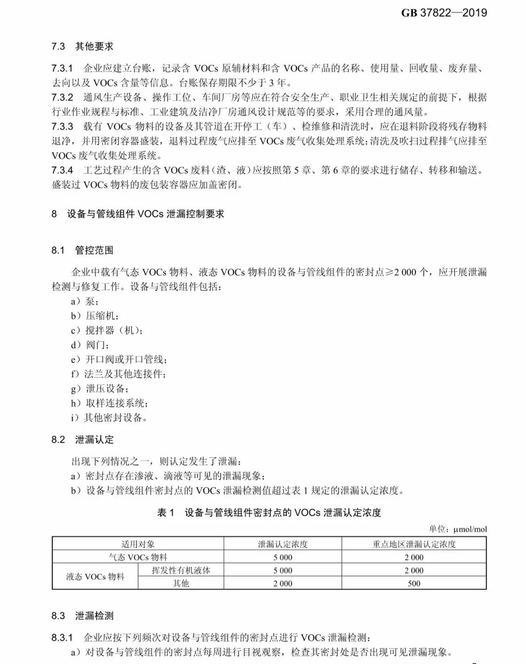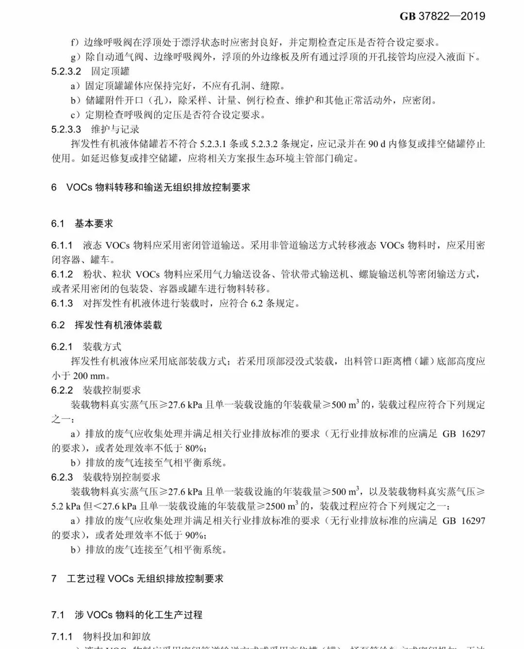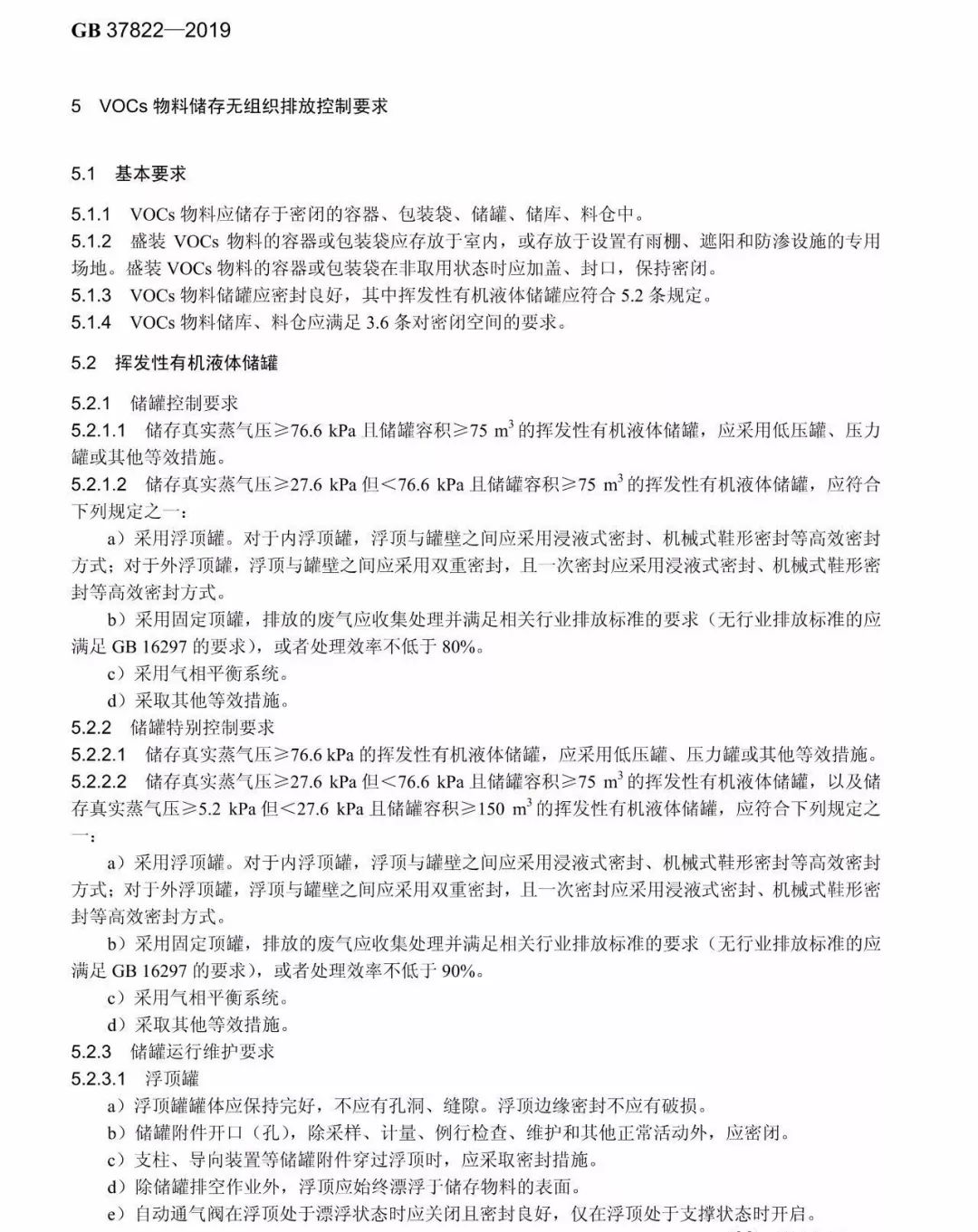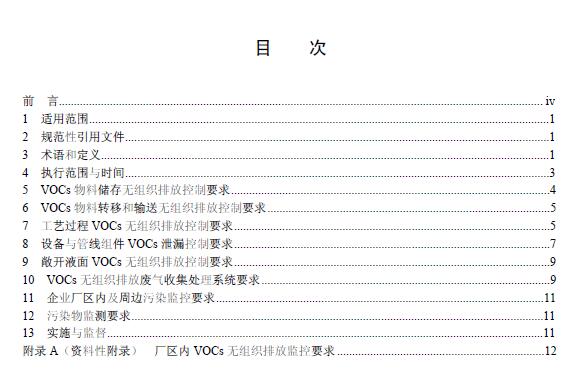 標(biāo)準(zhǔn)規(guī)定了 VOCs物料儲(chǔ)存無(wú)組織排放控制要求、VOCs物料轉(zhuǎn)移和輸送無(wú)組織排放控制要求、工藝過(guò)程 VOCs無(wú)組織排放控制要求、設(shè)備與管線組件 VOCs泄漏控制要求、敞開(kāi)液面 VOCs無(wú)組織排放控制要求,以及 VOCs無(wú)組織排放廢氣收集處理系統(tǒng)要求、企業(yè)廠區(qū)內(nèi)及周邊污染監(jiān)控要求。