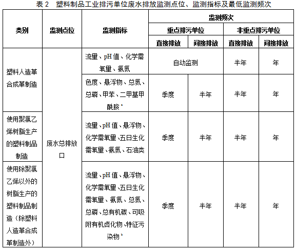 表1橡膠制品工業排污單位廢水排放監測點位、監測指標及最低監測頻次