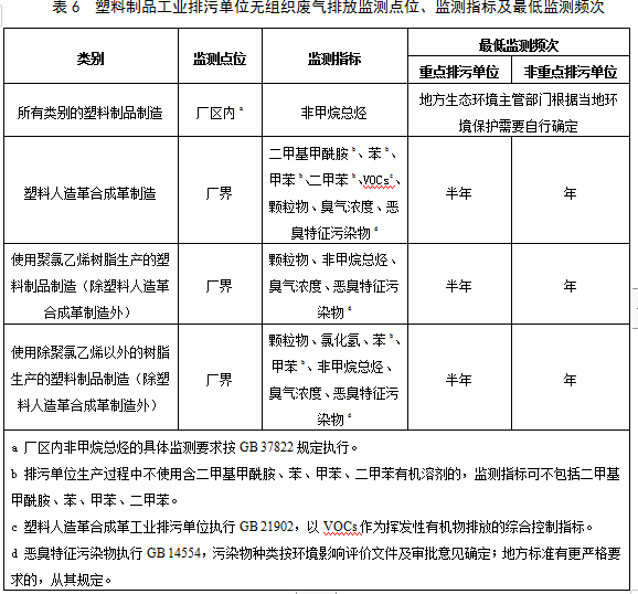 5.5.1 除表1~表6中的監測指標外,5.5.1.1和5.5.1.2中的污染物指標也應納入監測指標范圍,并參照表1~表6和HJ 819確定監測頻次。