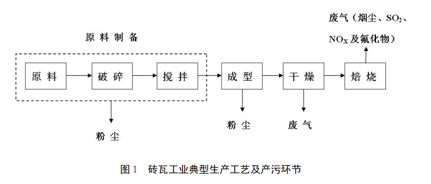 圖 1 磚瓦工業(yè)典型生產(chǎn)工藝及產(chǎn)污環(huán)節(jié)
