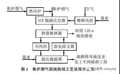 遷安中化焦爐煙氣脫硫脫硝工藝流程示意圖見圖1。