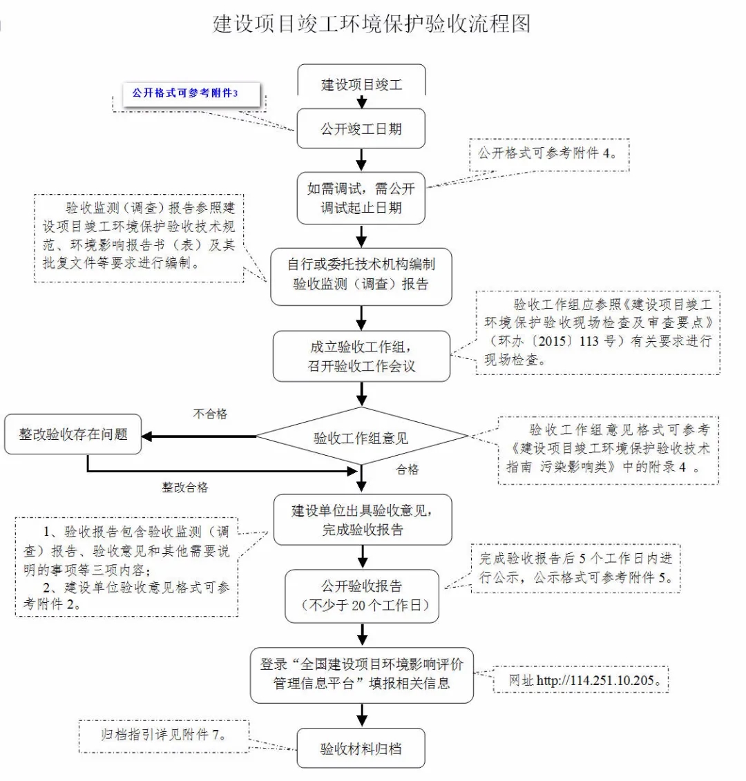 一、編制環境影響報告書(表)的建設項目竣工后,建設單位應當按照《建設項目竣工環境保護驗收暫行辦法》(國環規環評〔2017〕4號)規定的程序(流程圖見附件1)和內容,組織對項目配套建設的環境保護設施進行驗收,編制驗收報告,出具驗收意見(附件2),依法向社會公開相關信息(附件3-5),驗收合格后主體工程方可投入使用。