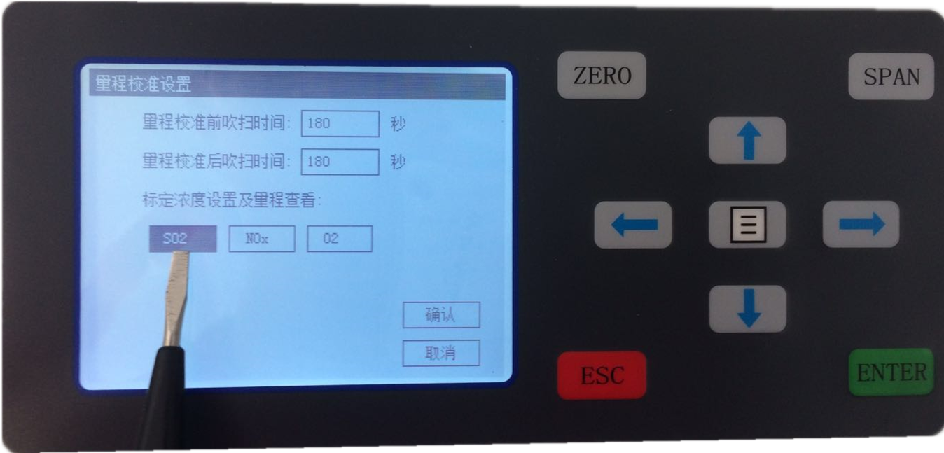 2.5 SO2標氣濃度值設置完成,按ESC返回上一級后,選擇NOx